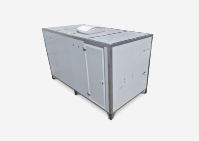 Toda la estructura del módulo, todos los remates y todos los accesorios están fabricados en acero . Las paredes y el techo son de panel sándwich para aislar térmicamente. El suelo, las paredes interiores y las banquetas son de material plástico para facilitar su limpieza.